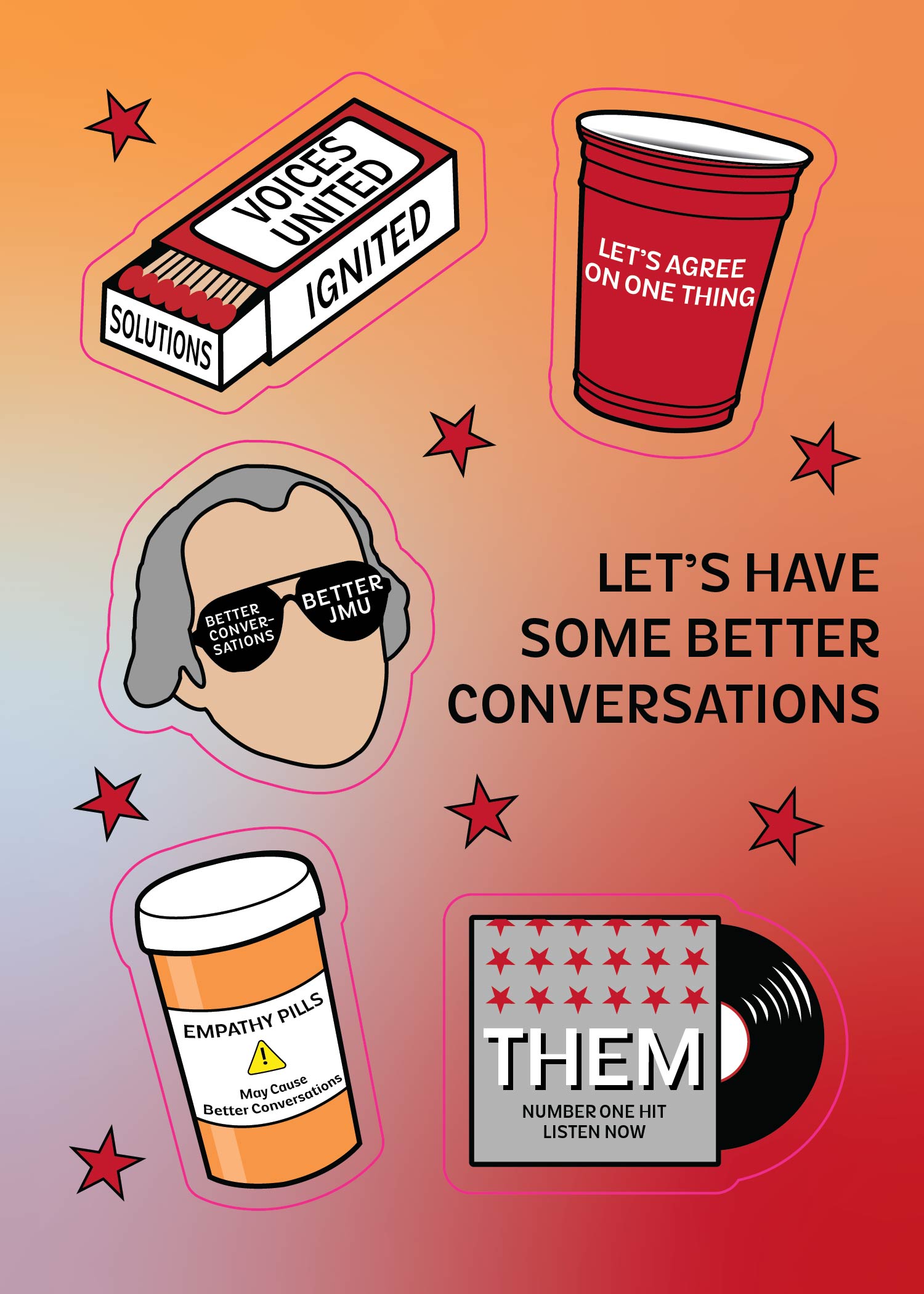 Better Conversations Together JMU is a freshman-development program within the university’s Center for Civic Engagement. Its mission is to equip students with the skills needed to participate in thoughtful, reasoned discussions, especially around divisive or complex issues.